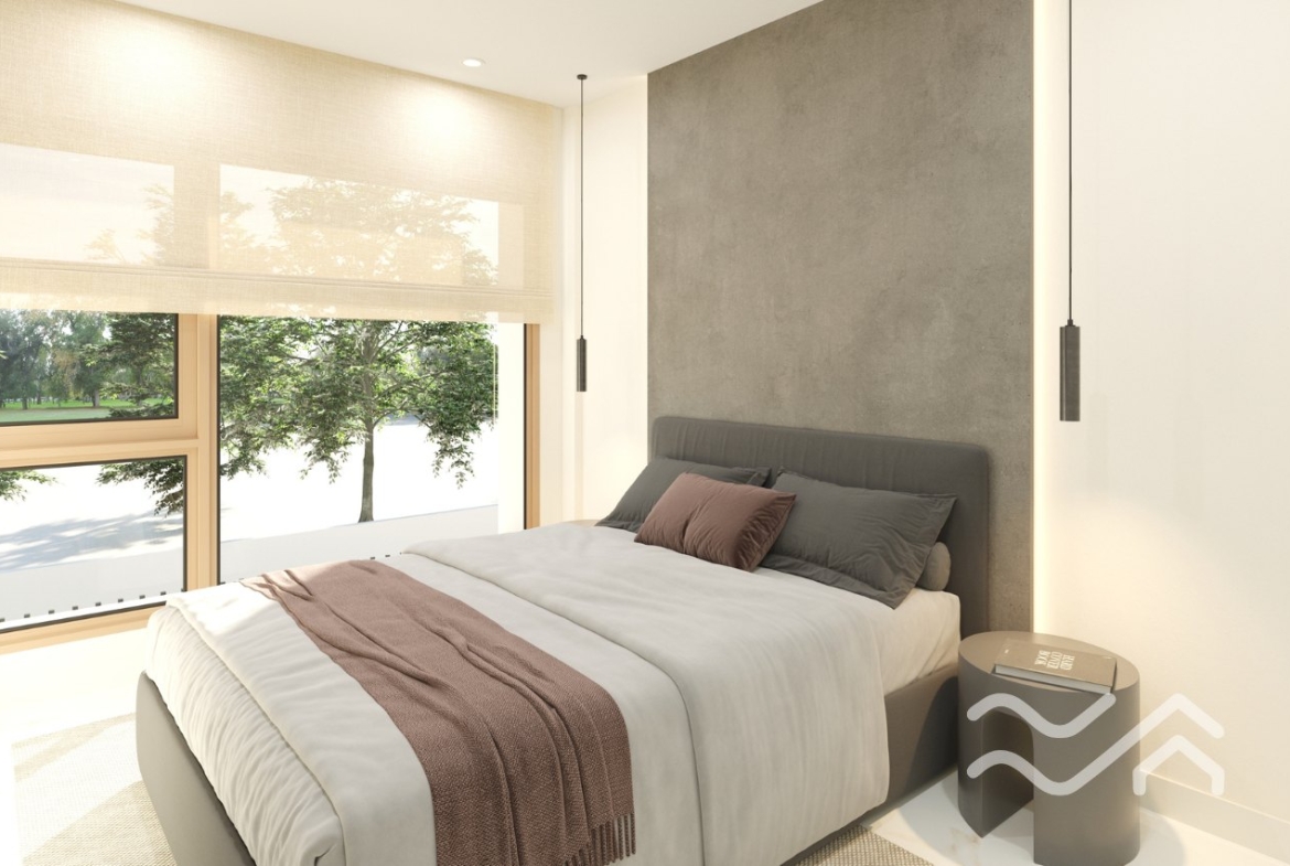 Innvendig møter du lyse oppholdsrom med store vindusflater og åpen kjøkkenløsning. Boligen er bygget i høy kvalitet og leveres med preinstallasjon for klimaanlegg. Uteplassen inkluderer hage og terrasse på bakkeplan, balkong i andre etasje og en romslig takterrasse med mulighet for å installere jacuzzi dersom man ønsker det.