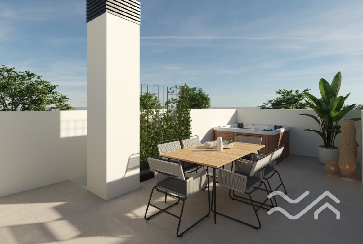 Disse stilrene rekkehusene i prosjektet Essence III i Dolores byr på moderne design, gode planløsninger og flotte uteplasser. Her får du en bolig fordelt over to etasjer pluss privat solarium, med mulighet for 2 eller 3 soverom og 3 bad.