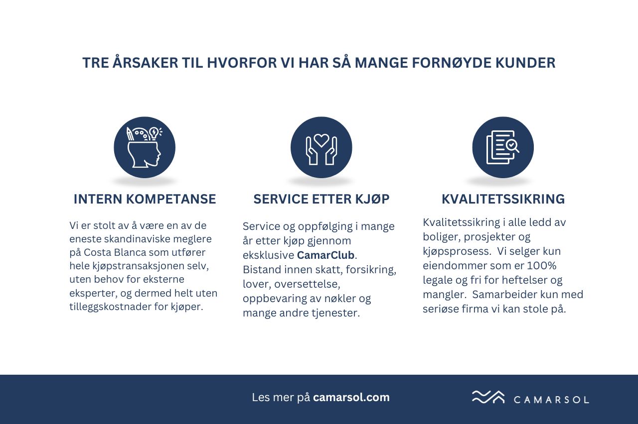 Beliggenheten i Las Heredades/Rojales gir deg det beste fra to verdener: fredelige omgivelser og samtidig bare ti minutter til strender og golfbaner. Som nybygg får du topp standard, moderne løsninger og mulighet for personlig tilpasning. Prisene starter fra 429.000 €, men husk at prisene varierer etter intern beliggenhet, modell, størrelse og tomt.