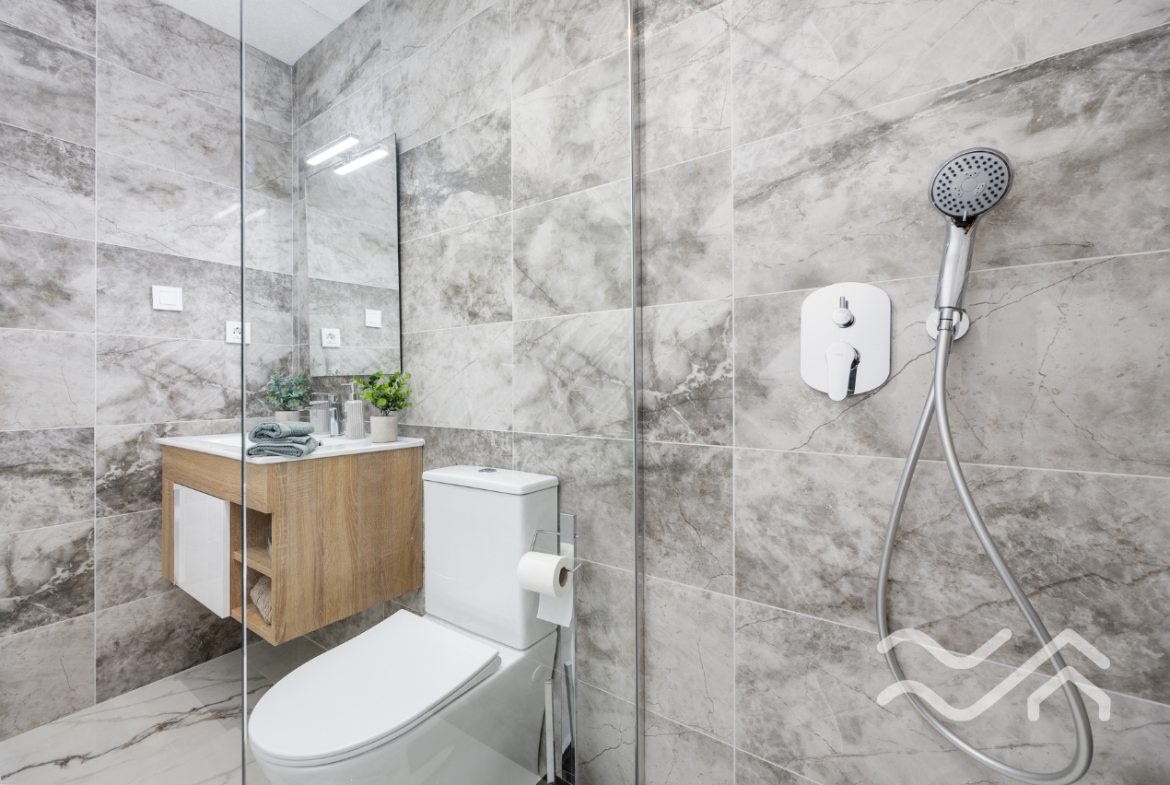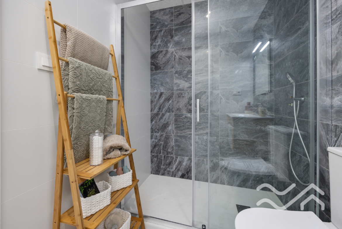 The terrace quickly becomes a natural extension of the home – ideal for slow mornings in the sun or long dinners on warm evenings. The apartments also come with fully installed ducted air conditioning, an aerothermal hot water system and motorized blinds, ensuring both comfort and energy efficiency.