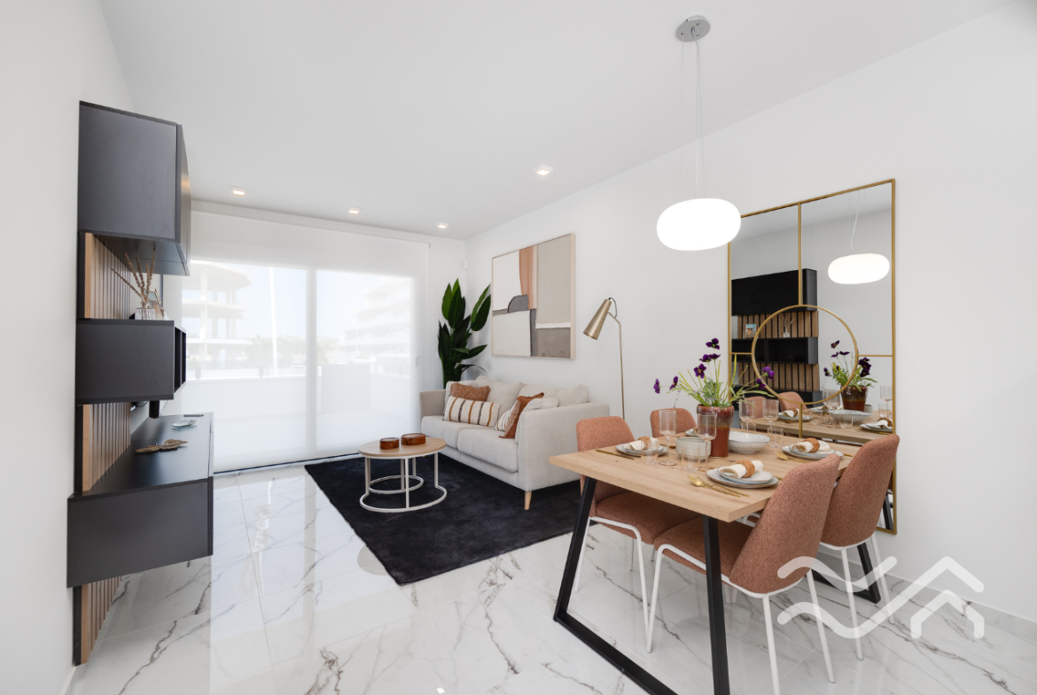 A modern and well-planned new development with bright apartments and spacious terraces, located in the charming town of San Miguel de Salinas – a genuine Spanish area with life all year round, just a short drive from golf courses and beautiful beaches.