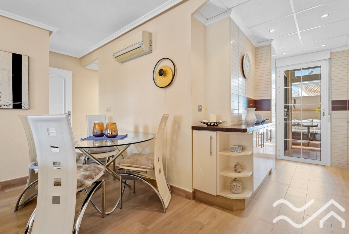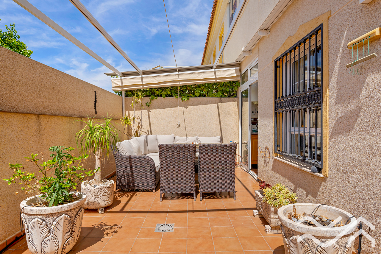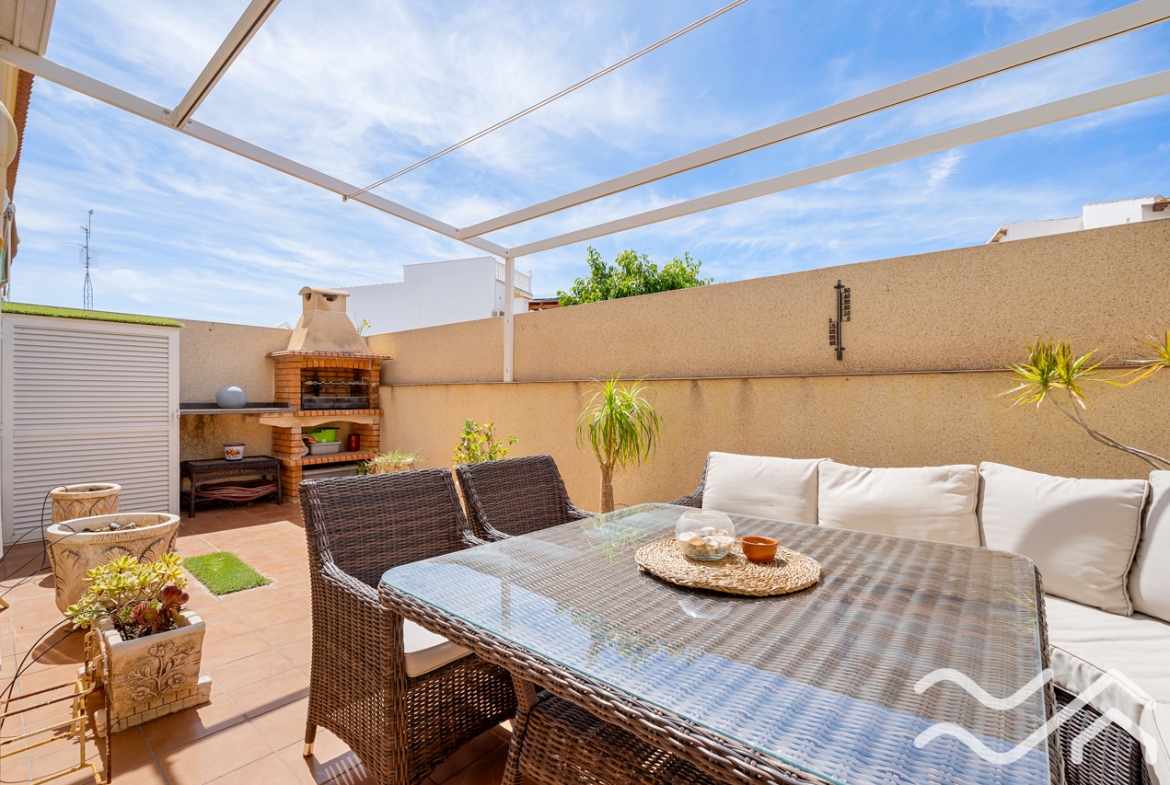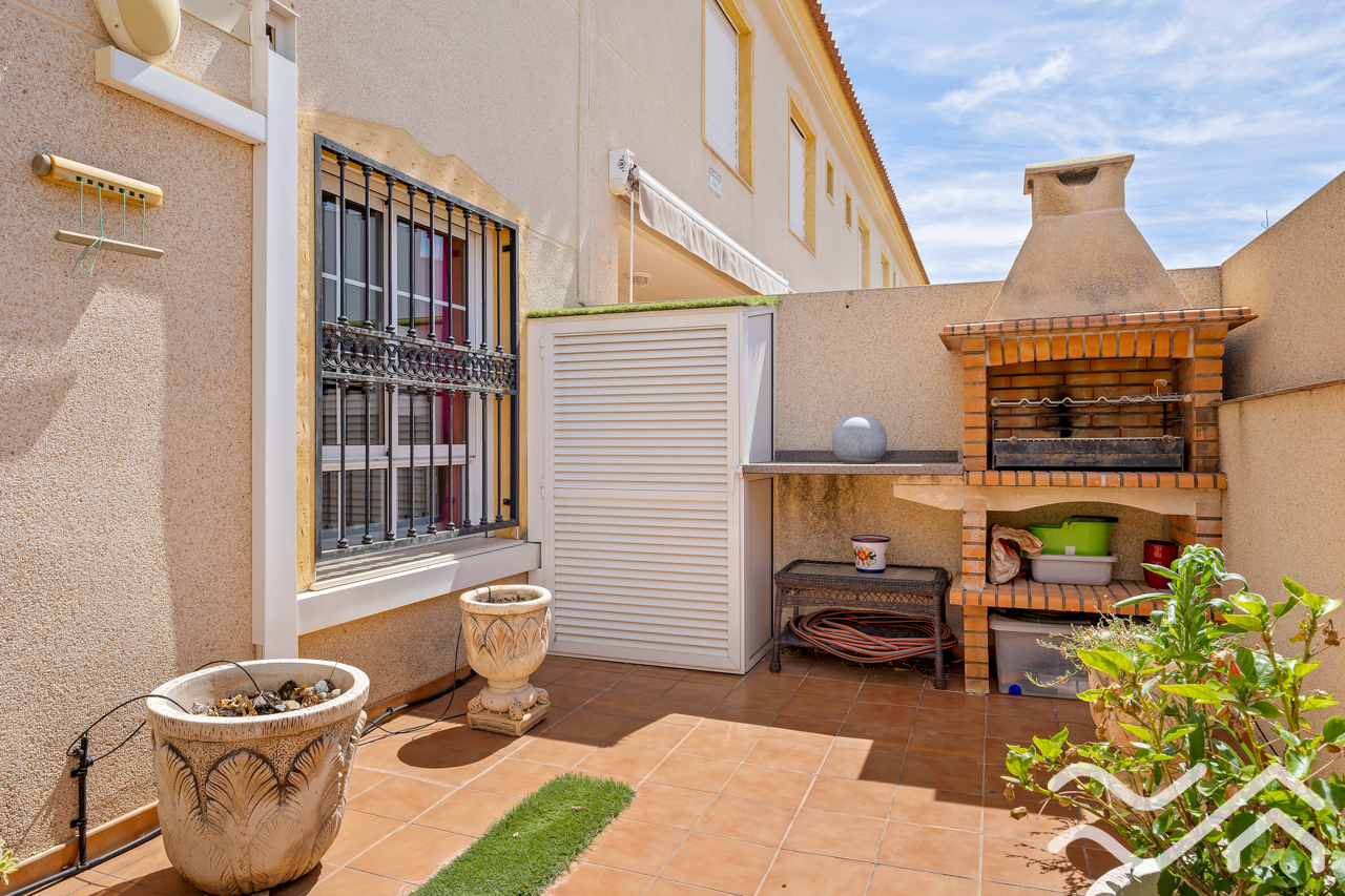 This cozy townhouse offers three bedrooms and two bathrooms – all on one level – and is located in an established residential area only 1,5km from the beach in Guardamar del Segura. A move-in ready home with generous outdoor areas and walking distance to both the sea and town life.
