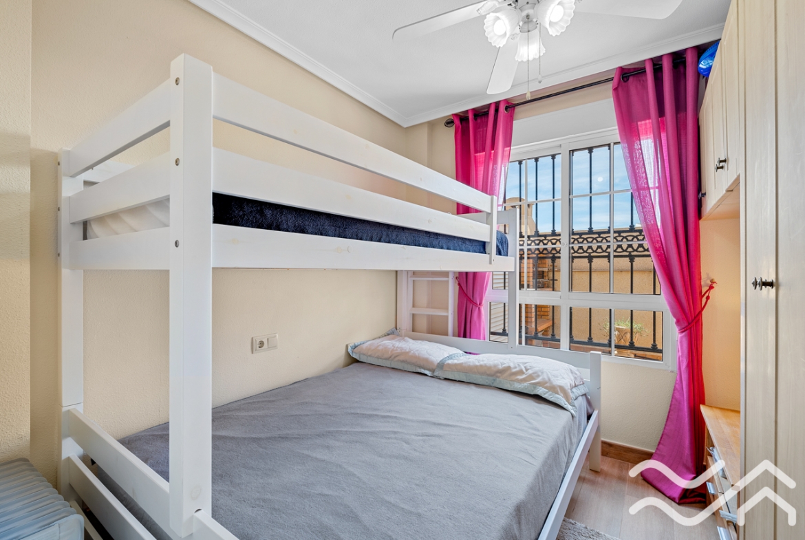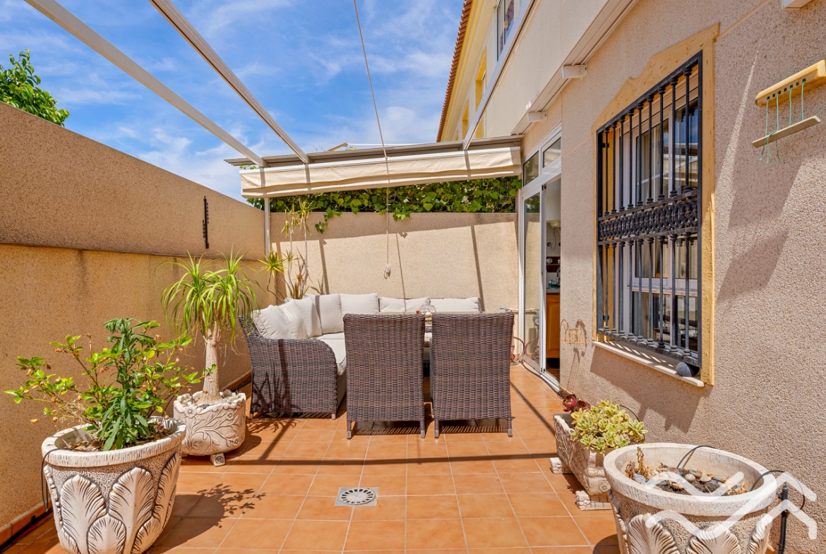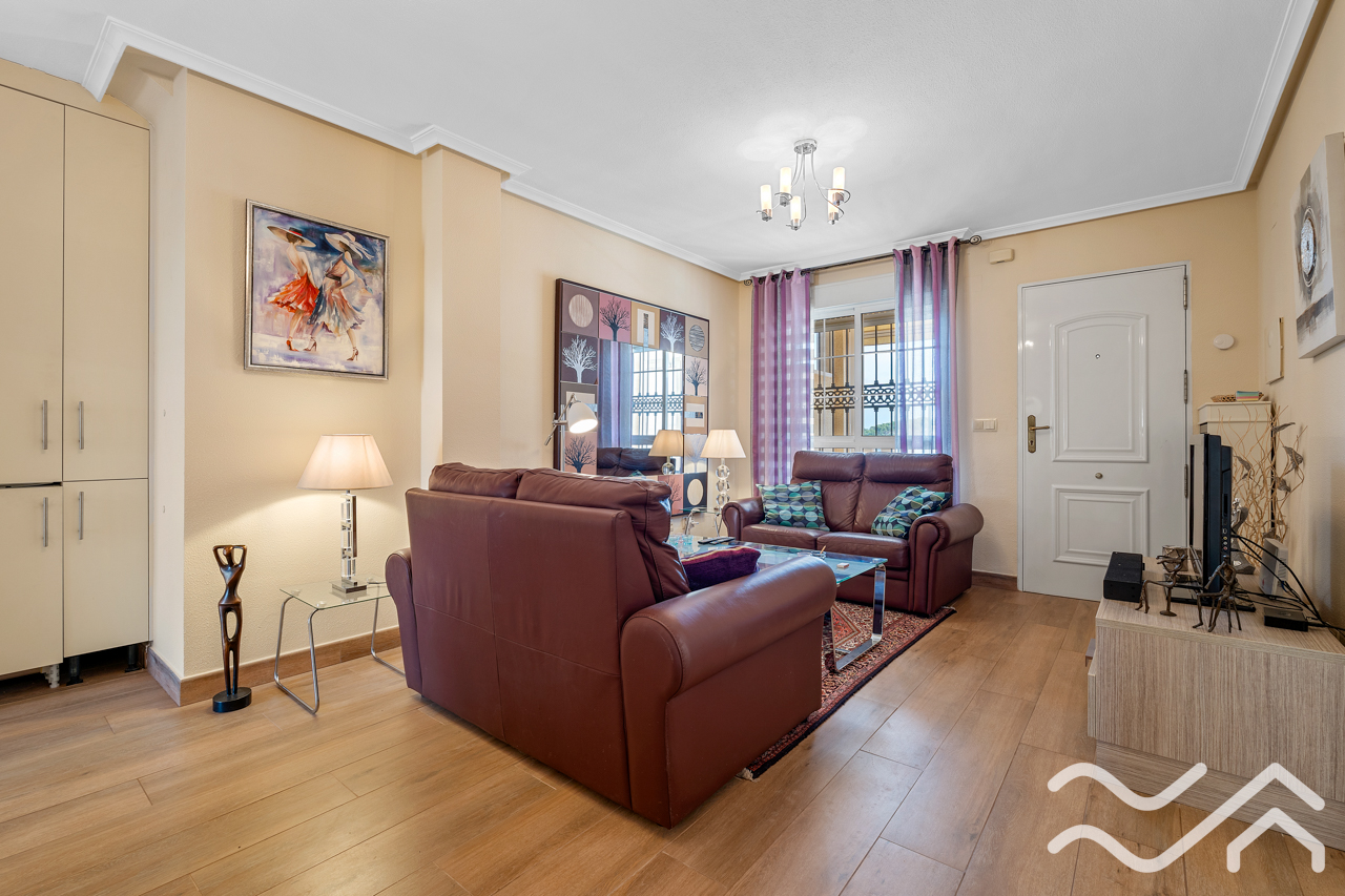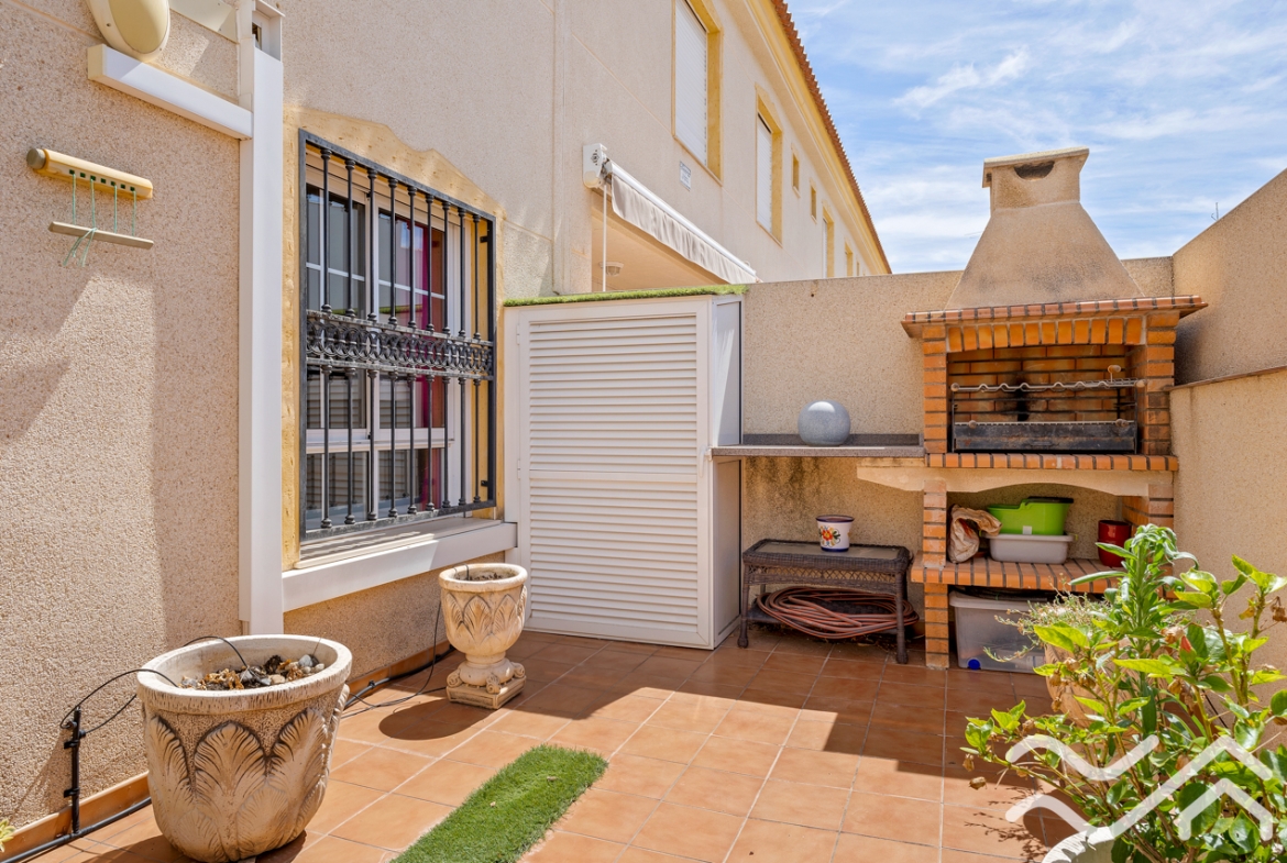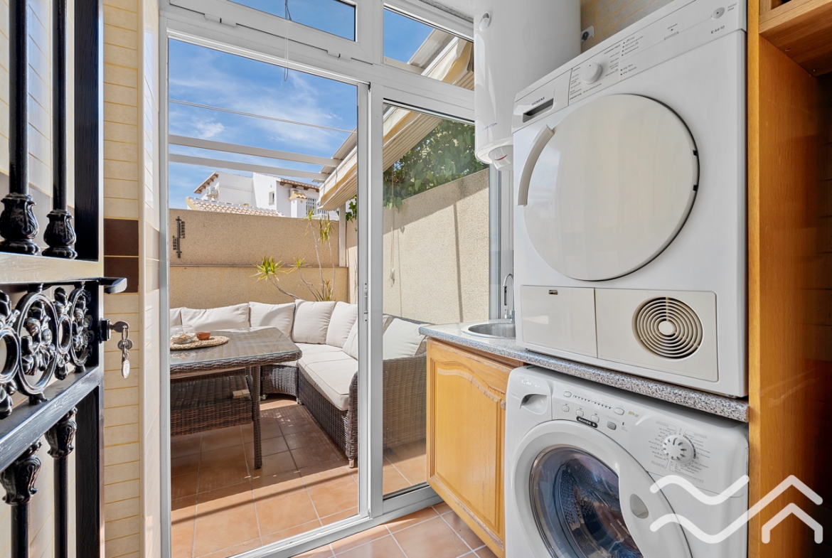 This cozy townhouse offers three bedrooms and two bathrooms – all on one level – and is located in an established residential area only 1,5km from the beach in Guardamar del Segura. A move-in ready home with generous outdoor areas and walking distance to both the sea and town life.