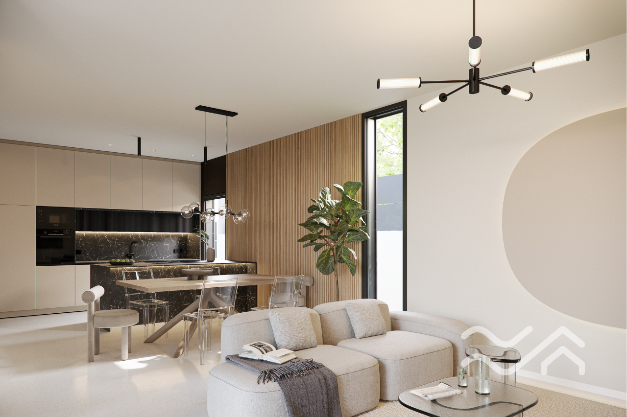 Step outside, and you really start to feel the lifestyle. Each villa comes with its own private plot of approximately 270–300 m², including garden space, terrace areas, and private parking. On top of that, all homes include a private solarium – ideal for long summer evenings, morning coffee in the sun, or simply enjoying the peaceful surroundings. There is also the option to add a private pool if desired.