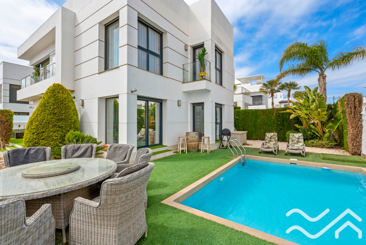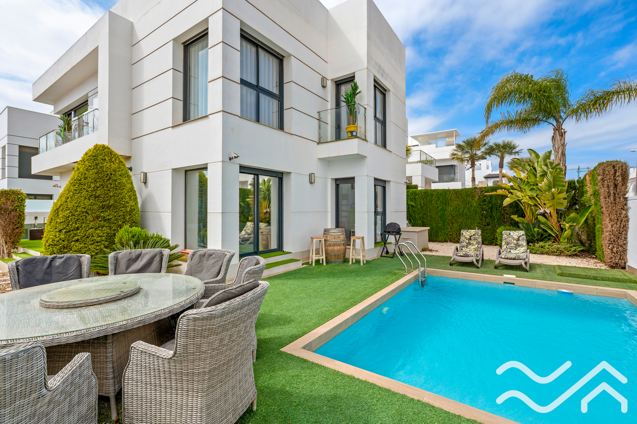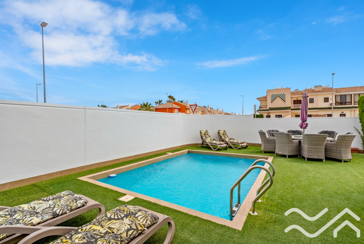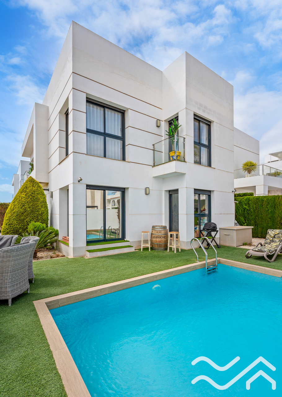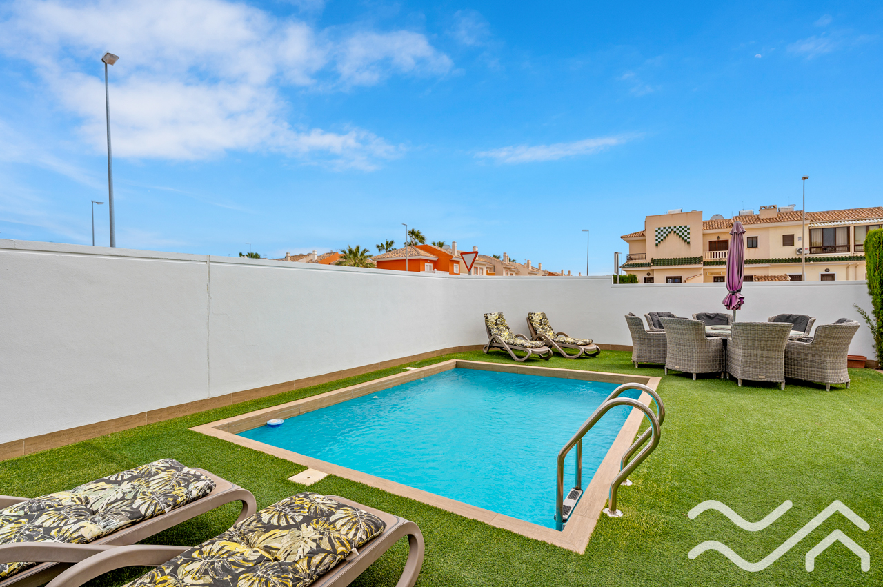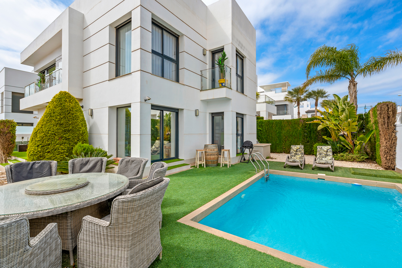 This is one of those homes that just feels right from the moment you walk in – a stylish, move-in-ready villa with four bedrooms, private pool, generous outdoor space and a sunny rooftop terrace, located in the sought-after area of Dona Pepa in Ciudad Quesada.