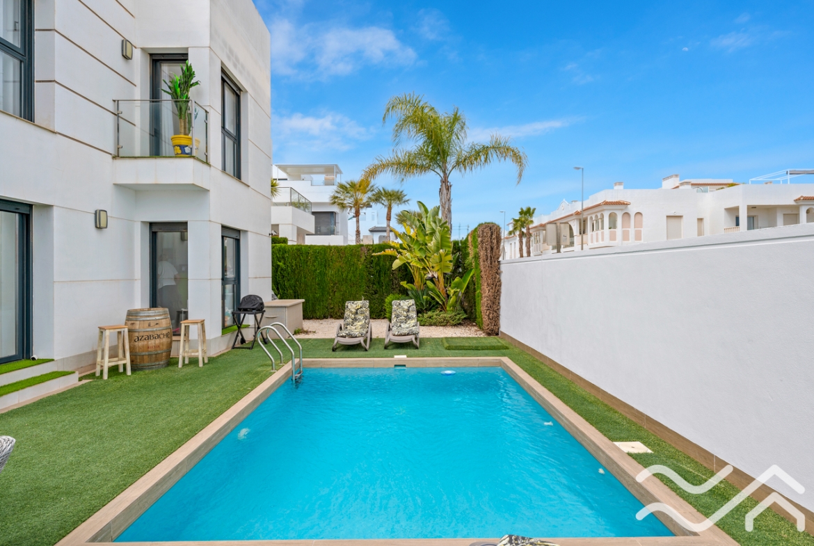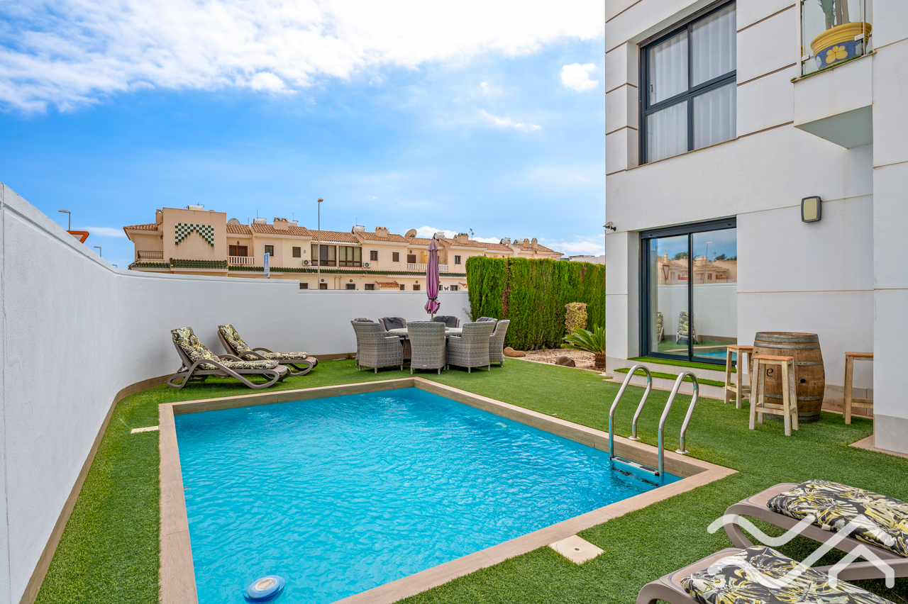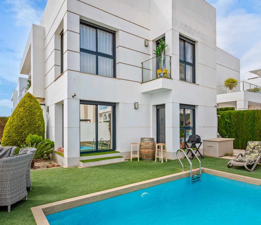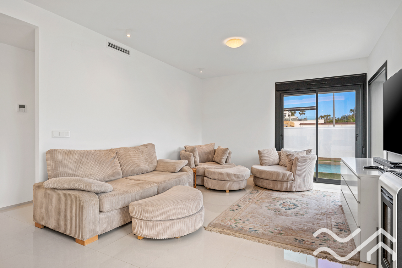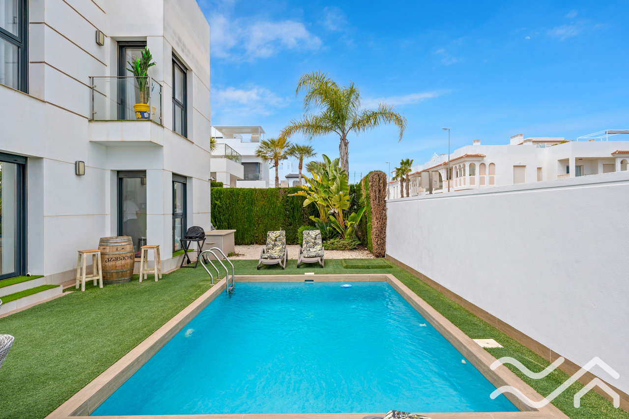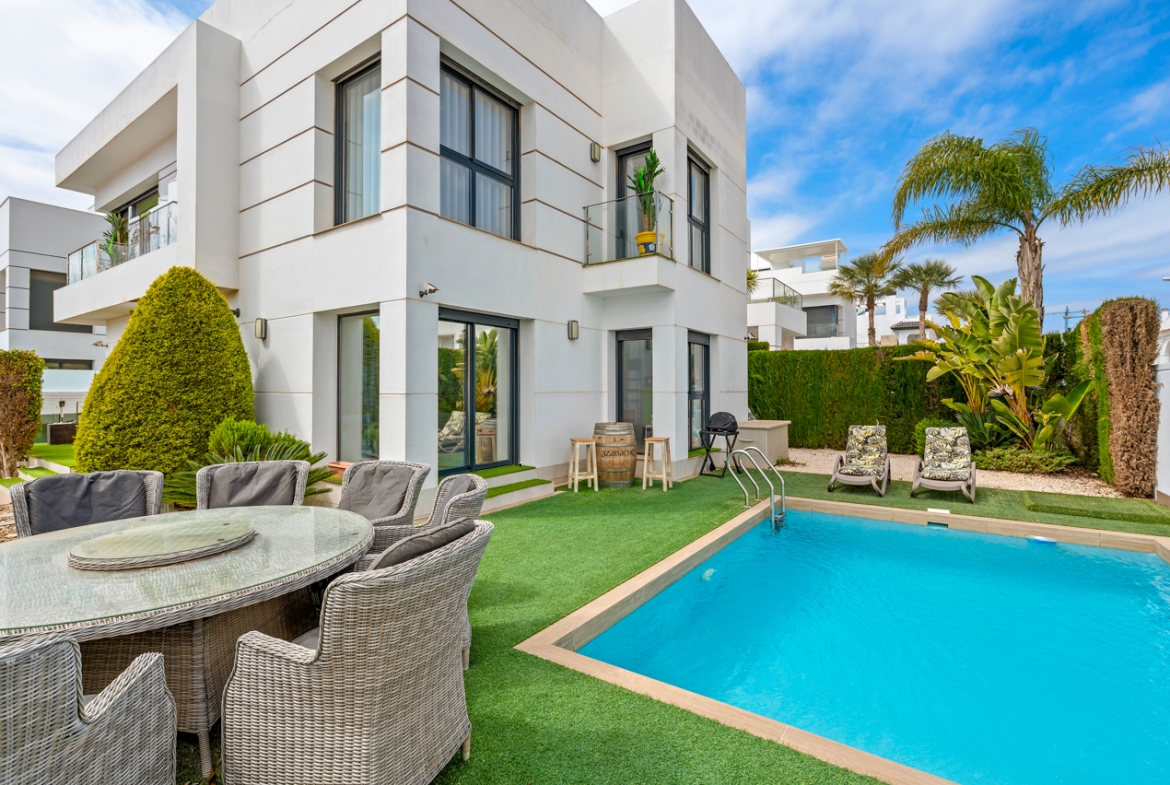 This is one of those homes that just feels right from the moment you walk in – a stylish, move-in-ready villa with four bedrooms, private pool, generous outdoor space and a sunny rooftop terrace, located in the sought-after area of Dona Pepa in Ciudad Quesada.