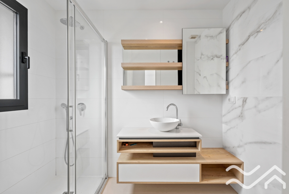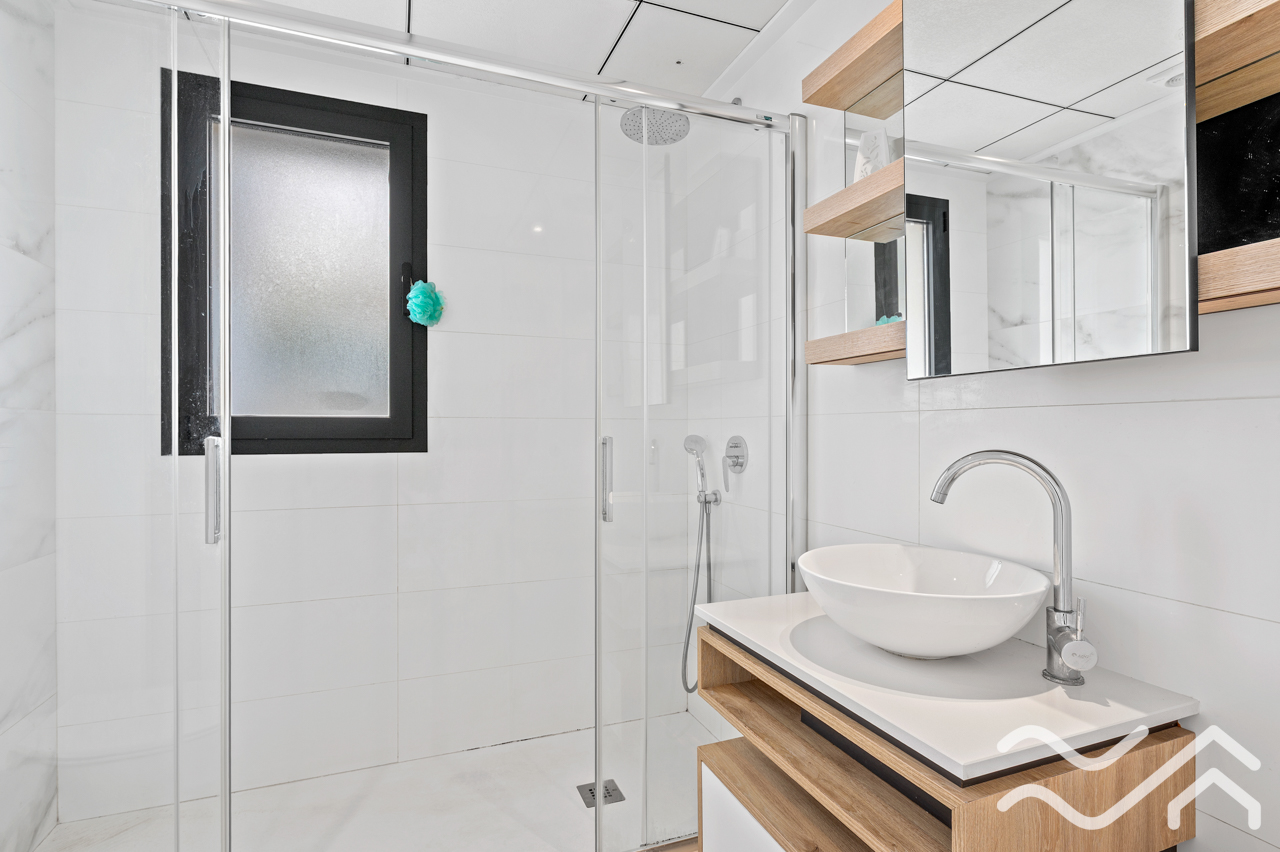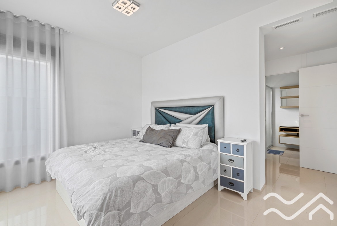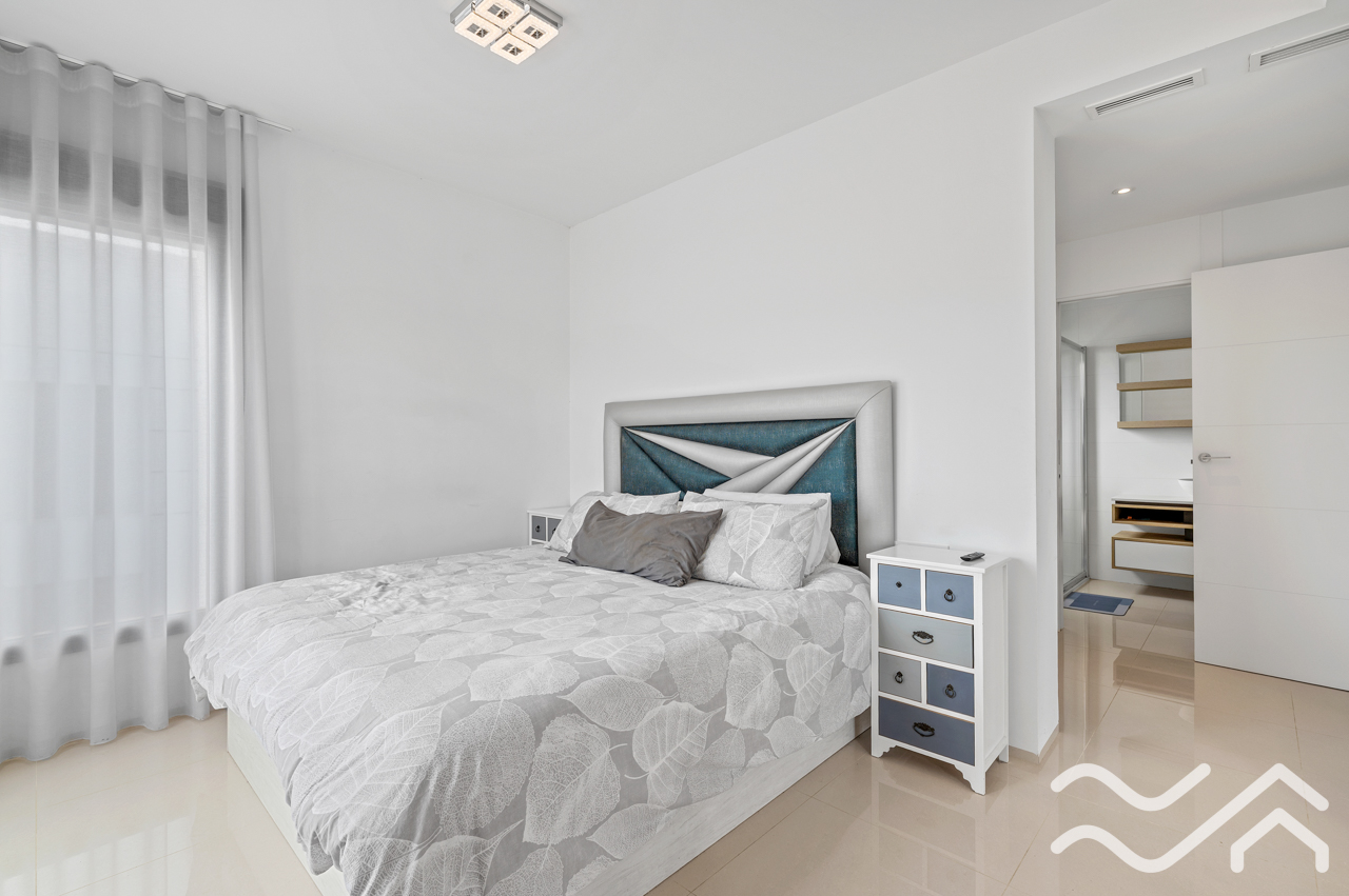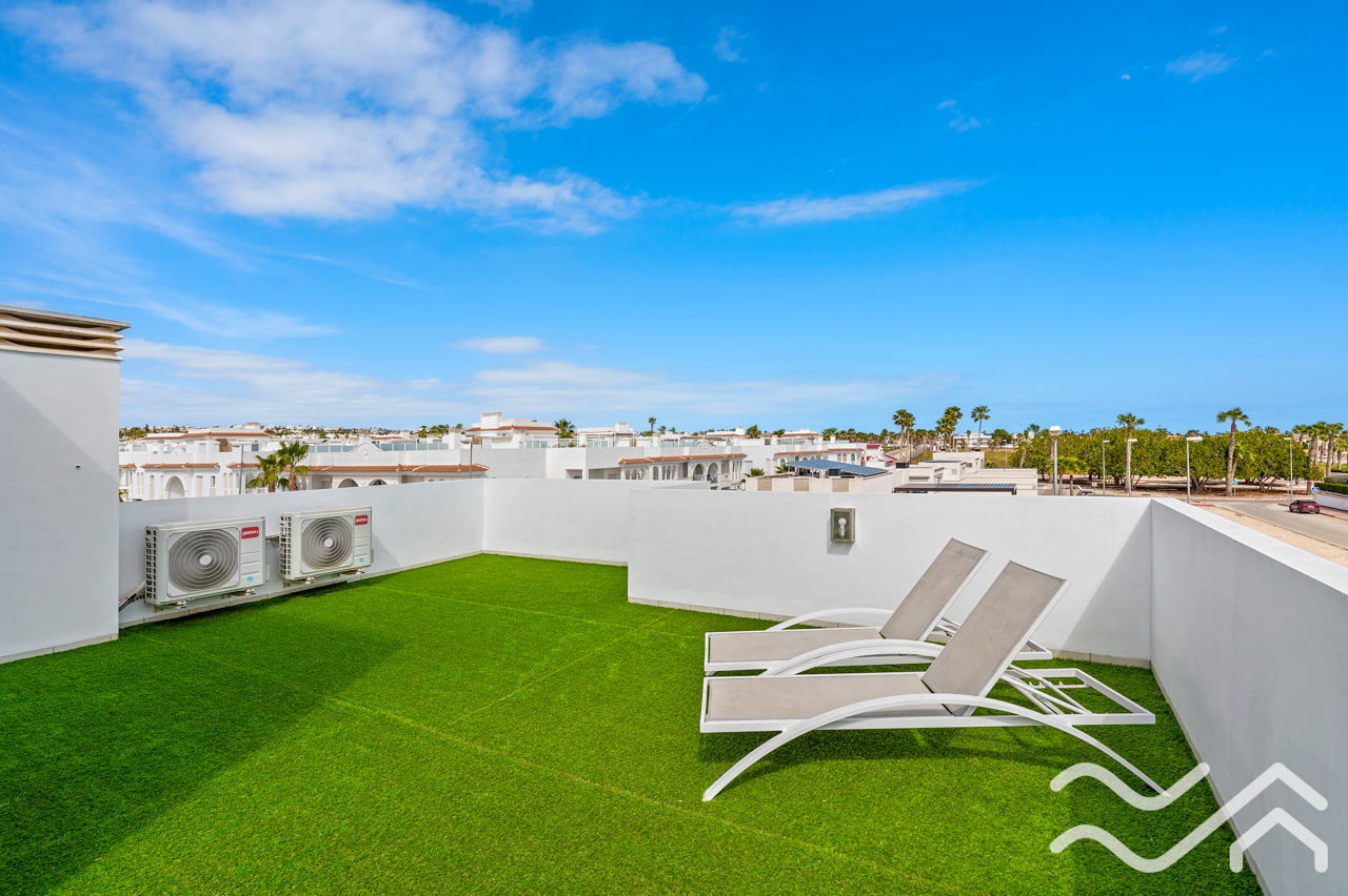 Upstairs, there are three additional bedrooms, all with their own en-suite bathrooms. This creates a comfortable and private setup, whether you have family visiting or simply enjoy having a bit of extra space. From here, you continue up to the rooftop terrace of approximately 60 m² – a real highlight of the home. Up here, you can enjoy sunshine all day long along with open views over the surrounding area and towards the nearby salt lakes. It’s the perfect spot for morning coffee, evening drinks, or just a quiet moment in the sun.