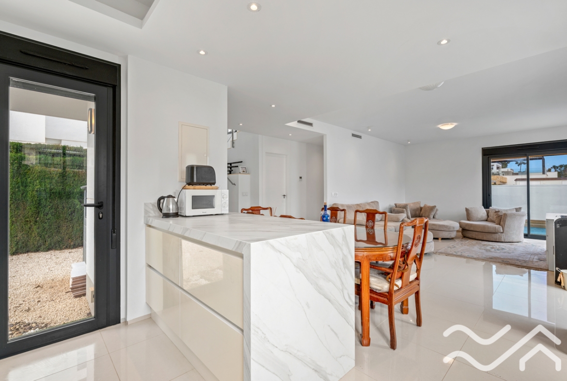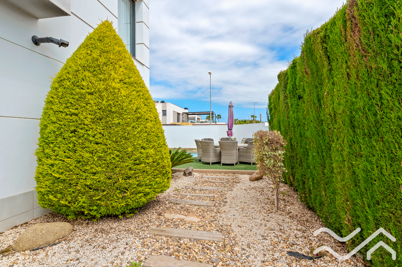 The villa was built in 2018 and has a modern, clean design with a layout that works equally well as a permanent home or a holiday retreat. Being south-facing, the property enjoys fantastic natural light throughout the day, and the plot is larger than what you typically find in newer developments in the area. Outside, you’ll find a private swimming pool, off-road parking, and several lovely zones for both sun and shade – perfect for long, lazy days outdoors.