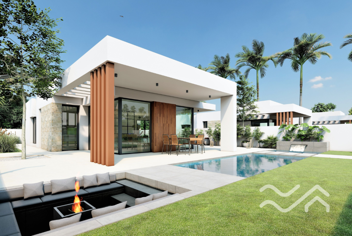 The villa offers three comfortable bedrooms and two bathrooms. The master bedroom stands out with its calm atmosphere and its own private patio – a perfect little retreat for a quiet morning coffee. The materials and color palette throughout the home are carefully chosen to create a warm and harmonious feel.