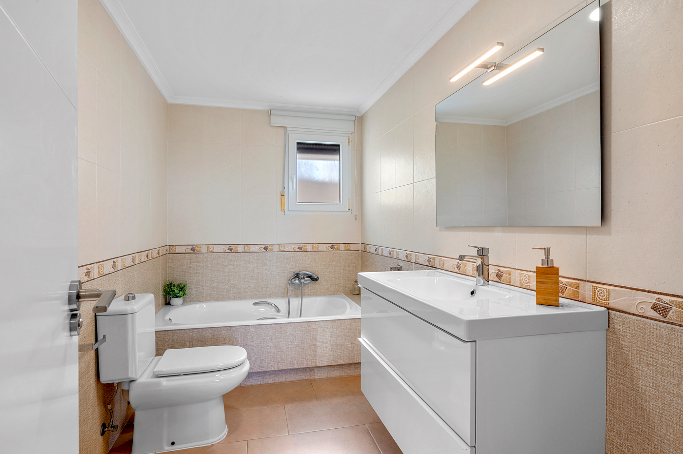 The property has three spacious bedrooms with room for wardrobes and storage. The main bedroom is located on the upper floor and enjoys direct access to a private terrace with open views over the surrounding landscape and the nearby salt lakes. It is a peaceful retreat, perfect for quiet mornings or evenings. The villa features three full bathrooms as well as a separate guest toilet, providing excellent comfort for family and guests alike.