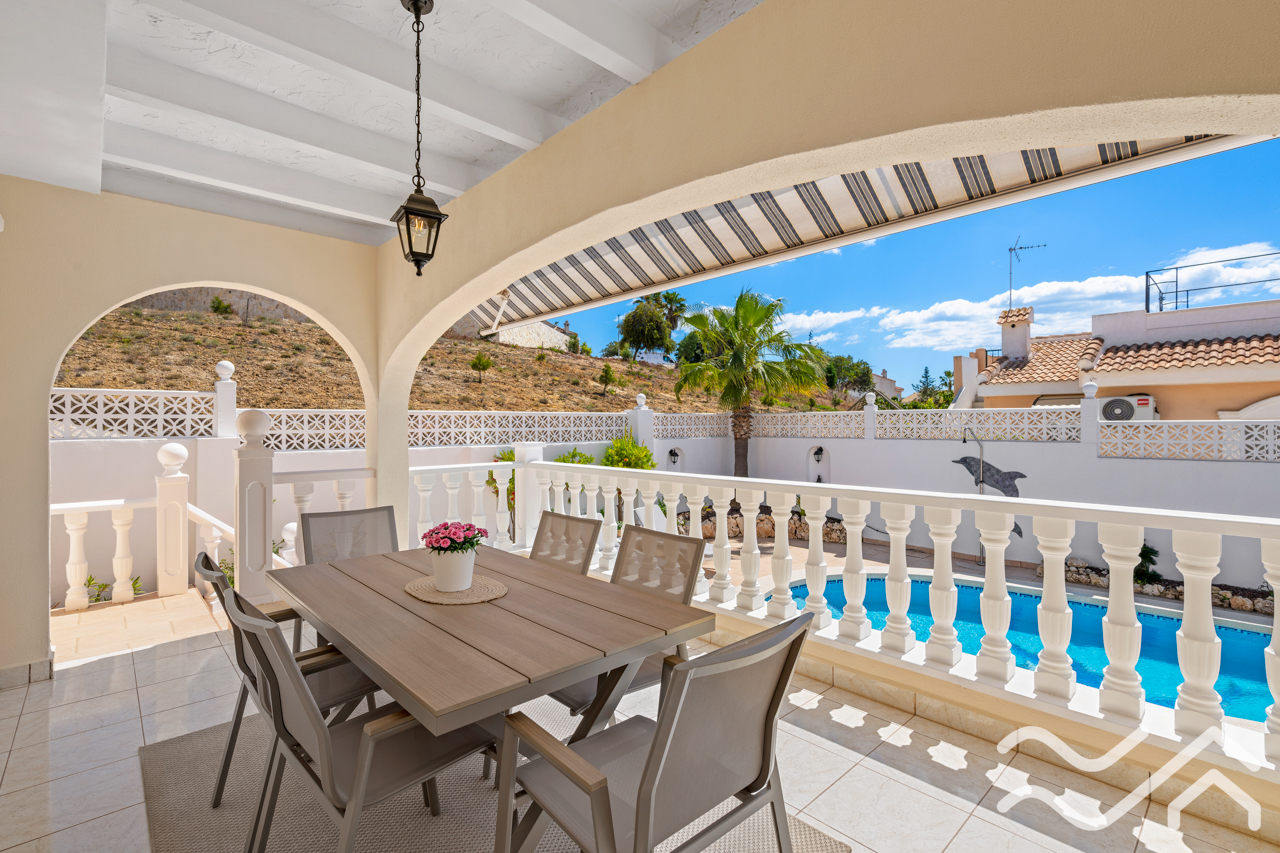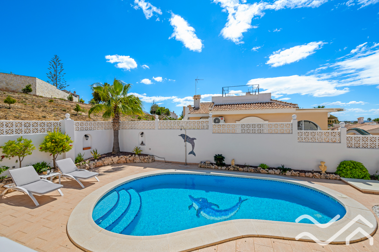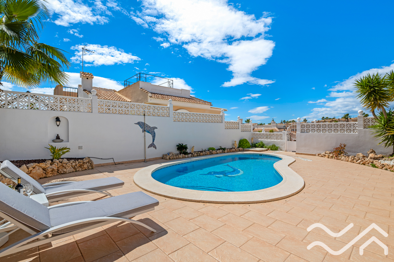 Outside, the property truly stands out. The private pool creates a perfect setting for enjoying sunny days, whether it’s a refreshing swim or simply relaxing by the water. There is ample space for sun loungers and outdoor dining, ideal for making the most of the climate.