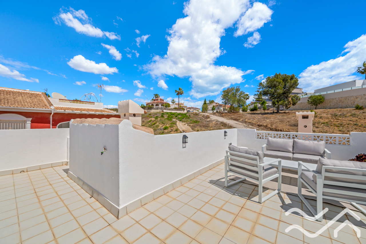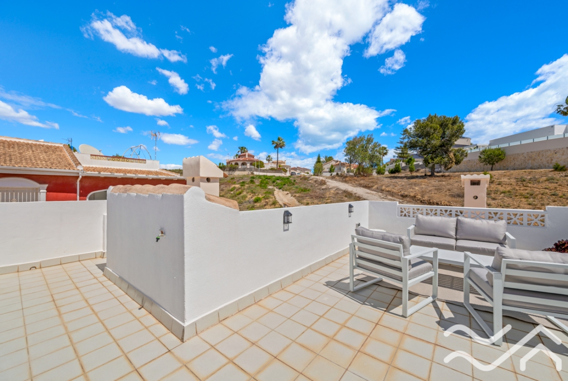 The rooftop terrace adds an extra dimension to the home, offering a private space to enjoy the sun throughout the day, as well as open views and peaceful surroundings.